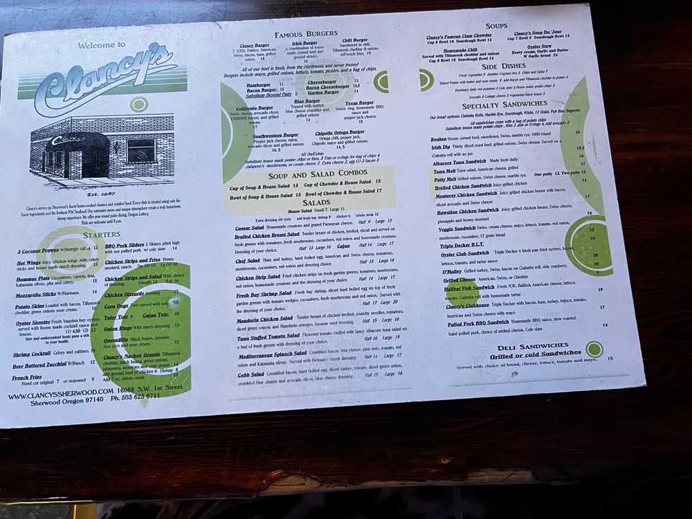 Welcome to Clancy's, Sherwood's hidden gem for seafood and more. This veteran-owned eatery captures the essence of casual dining with a divey yet inviting atmosphere. Whether you’re in the mood for a juicy burger, fresh halibut sandwich, or a vibrant garden salad, Clancy's caters to all tastes, even offering many vegetarian options.